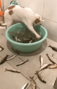 喵星人:主人,我来帮你洗鱼~